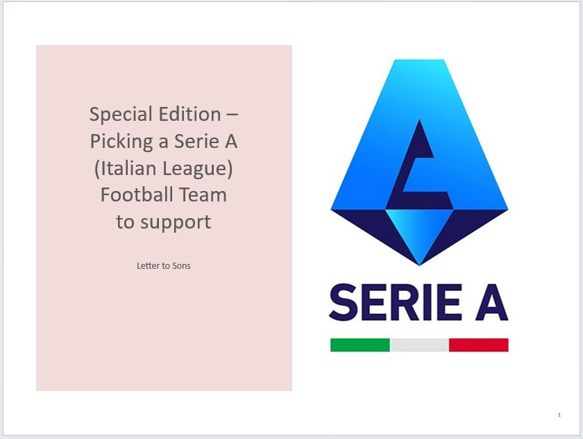 I am a football fanatic. Recently I decided to pick a Serie A Italian football team to support. I look forward to returning to Florence soon.