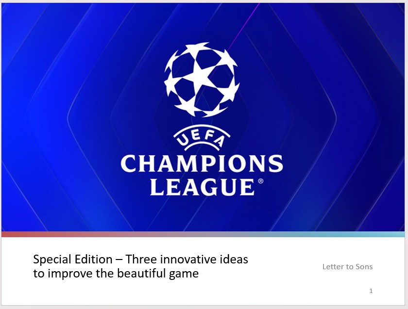 I love the game of football, aka soccer. However there are some problems with the modern game. Here are three ideas to make it better.